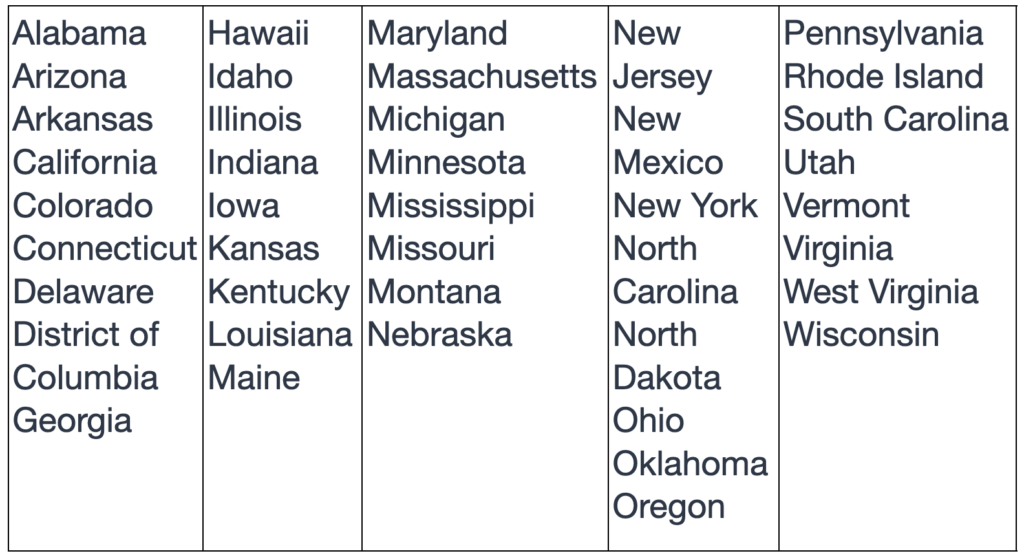 Alaska, Florida, Nevada, New Hampshire, South Dakota, Tennessee,Texas, Washington, and Wyoming.
